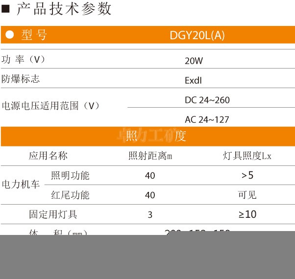該燈采用高亮度、高節(jié)電、長壽命大功率發(fā)光二級管制造,它的最大特點是輸入電源電壓范圍非常寬,而且輸入的電源交直流均可使用,它主要應(yīng)用于2.5噸、5噸、8噸、12噸、18噸防爆蓄電池電機車作投光照明之用。同時也可用36V到127V交流電作巷道、采掘工作面的照明。該燈總輸入功率為20W但其照度是40W白熾照明燈兩倍,壽命是白熾照明燈的50倍!所以說這種LED照明燈不僅節(jié)電而且還免去經(jīng)營更換燒損燈泡的麻煩,該燈裝有紅色發(fā)光管,當(dāng)白燈滅時紅燈即亮。