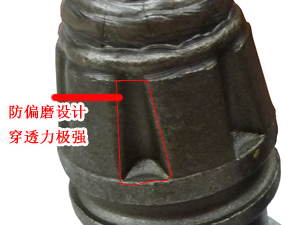 優勢五: 錐形齒體設計, 胎體梯形流水槽防磨偏設計, 穿透能力極強。 |