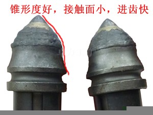 優(yōu)勢(shì)三: 胎體選用經(jīng)過(guò)熱處理高強(qiáng)度合金鋼, 保持高強(qiáng)韌形和高耐磨性 | 優(yōu)勢(shì)四: 齒尖帶有錐形度, 接觸面小,進(jìn)齒快, 有效提高鉆進(jìn)速度。 |